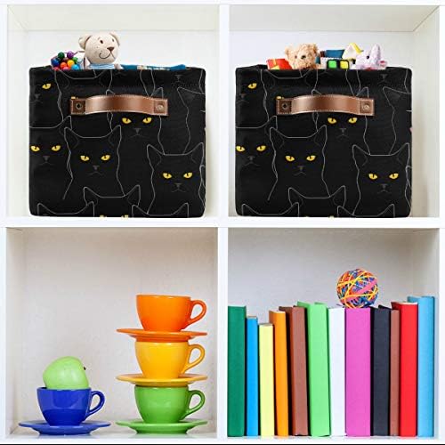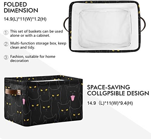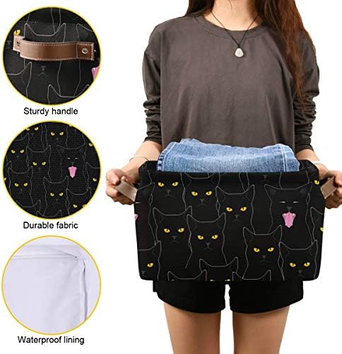 Why choose our large storage basket? Spacious capacity: 15″(L) x 11″(W)*9.5(H), store more stuff. Sturdy side PU leather handles for easy carry. Durable Material: Canvas + PE Coating linner. Collapsible design for compact, convenient storage. Cute pattern design. Multiple function, suitable for any place.
