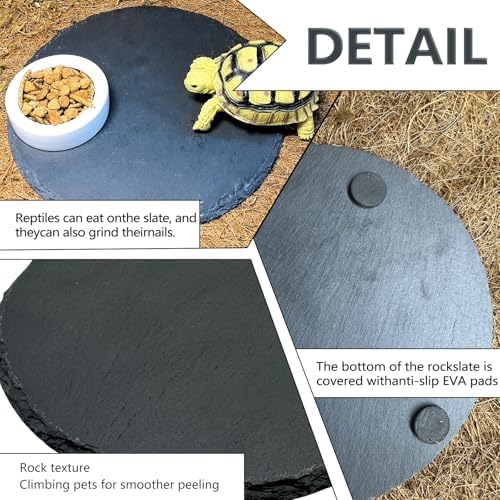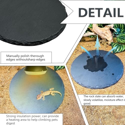 GOOD MOISTURIZING -You can pour some water on the rock plate. The stone plate can absorb water, slowly evaporate, and emit moisture,with good moisturizing effect.It can be placed under the sun lamp or UVA lamp to absorb heat.