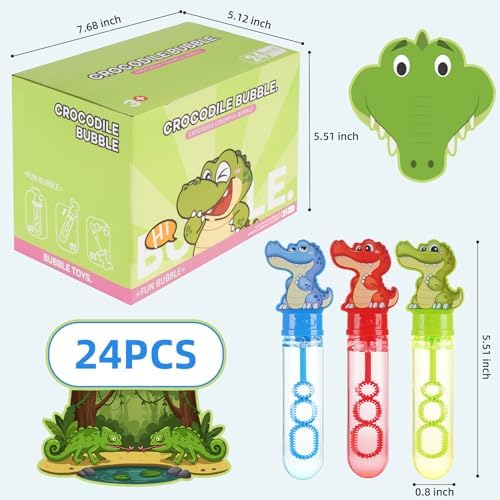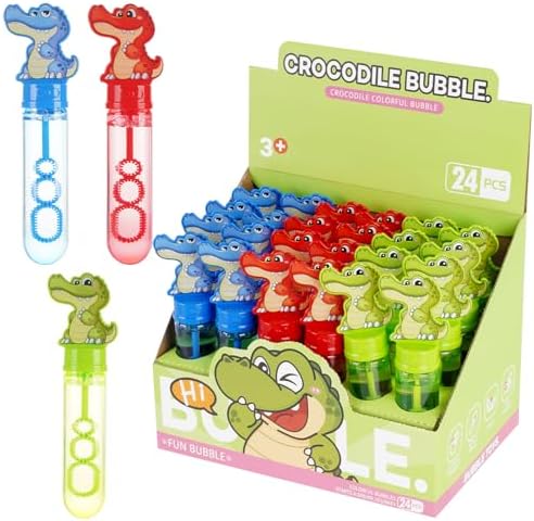 CUTE ALLIGATOR DESIGN:24 pcs Bubble Wands contain 3 colors of CUTE Alligators. 3+ years KIDS will have a clear understanding to the Reptile Series animal. The Alligators blow out tons of colorful bubbles. In any Swampy-themed birthday party,it will impress your kids in the Bubble world and host a magical and memorable birthday party with all your friends!