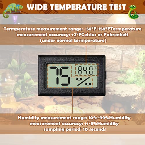 Comprehensive Monitoring Experience: With the purchase of this kit, you will receive two humidity thermometers that can monitor multiple areas of your reptile tank or multiple containers at the same time. This gives you a more comprehensive view and control over the environmental status of your entire ecosystem without having to invest in additional monitoring equipment.