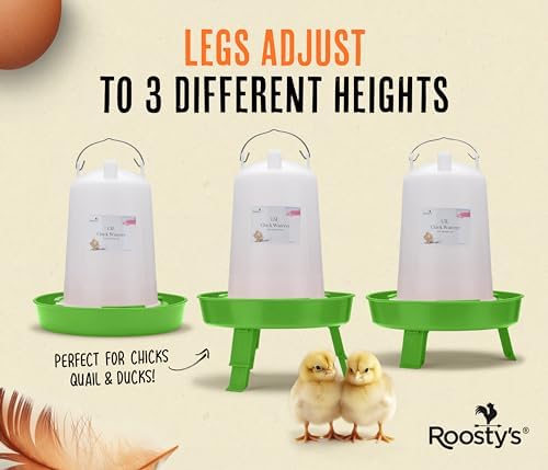 Lifetime Use | Our chicken water feeder has 3 height options. You can fold out the chicken waterer legs as your girls grow from baby chicks to fully grown hens, or hang by the strong steel handle. They’re also great duck supplies and quail chick starter kits