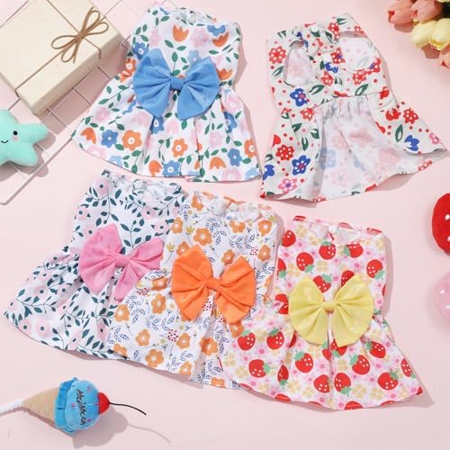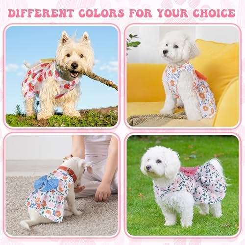 Cute Designs: these pet clothes are designed with bright red strawberries, fresh orange lemons, elegant pink morning glory, soft pale blue daisies, playful small yellow flowers styles, full of summer vibes; The pets dresses are also designed with cute bows in the waist, beautiful and stylish