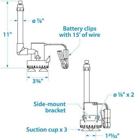 Includes foam filter, side-mount bracket, battery clips and super-strong suction cups