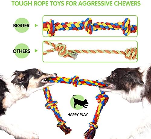 HEAVY DUTY ROPE TOYS FOR AGGRESSIVE CHEWERS: The durable dog toys are made of high quality nature cotton that wear-resistant, tightly woven twist and sturdy knots make large dog toys stand up for aggressive chewing
