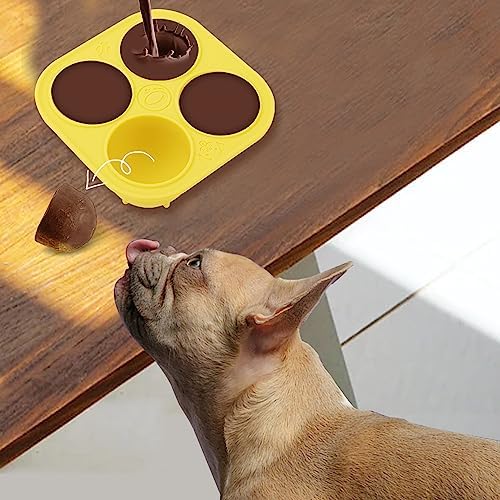 Easy to Use: The silicone dog treats mold is easy to use, you just need to fill the dog treat mold with your puppy’s favorite food or fruit, then put it in the freezer. The inner diameter of each hole is about 4.5cm/1.77in, you can get four kinds of delicious dog treats after freezing for a few hours.