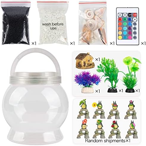 EASY TO INSTALL:You only need to put in accordance with the pictures show accessories, then use the dot glue provided by us to stick the remote control color lamp into the bottle cap, you can also DIY with your children to increase the fun and creativity, if you want to give the child a gift, this fish night light aquarium for Kids will be your best choice. (Excluding fish)