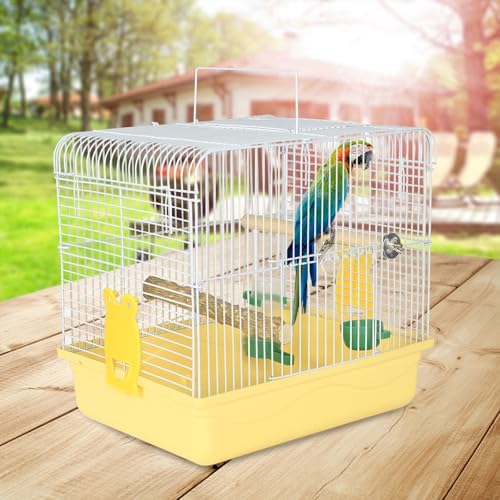 QUICK-SETUP PARAKEET CAGE WITH ESSENTIAL ACCESSORIES – Effortlessly assemble this bird cage for parakeets using included tools, 2 anti-escape clips, and 2 solid wood supports. Comes with a food container, water fountain, and Drop-proof tray for stress-free feeding and cleaning