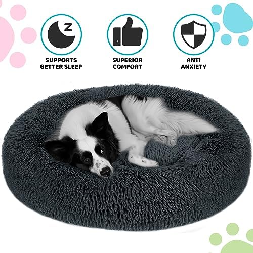 [Pet Safe Material] The calming dog bed is made of durable nylon and luxurious faux fur. The ultra-soft padding won’t put extra pressure on your friend’s joints, providing relief from joint and muscle pain. Physical relaxation is especially important for medium and large dogs.