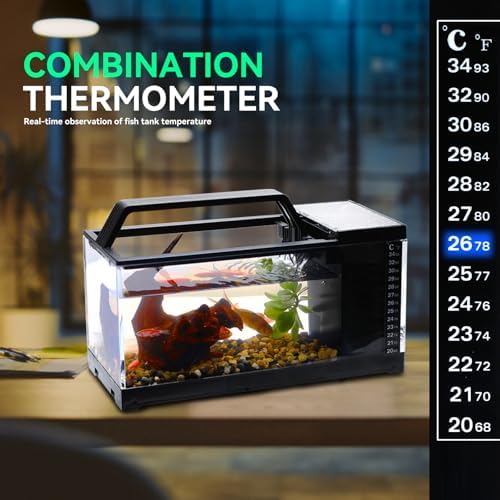 Built-In Temperature Sticker & Easy to Maintain: The temperature sticker helps you monitor water temperature easily. The tank is low-maintenance, making it an ideal choice for busy individuals or beginners looking to enjoy an aquarium without the hassle.