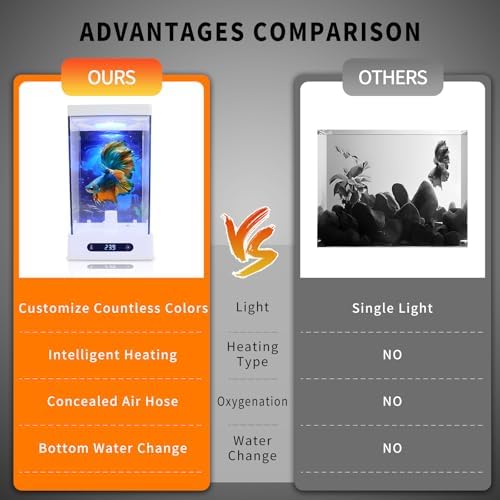 【Smart APP Control】: The fish tank support APP VSON for control (Please read the instructions), Choose Different Colors, Brightness Adjustment,Temperature Adjustment,Feeding Records,Water Change Record.