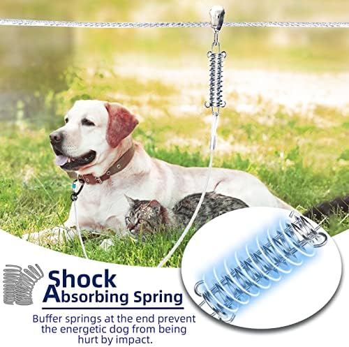ANTI-SHOCK DOG RUNNER LINE:The shock absorbing spring is located on the runner lead instead of the cable, help your dog reduce the tension more directly to avoid injury, give your pet more freedom and security to run in the yard.