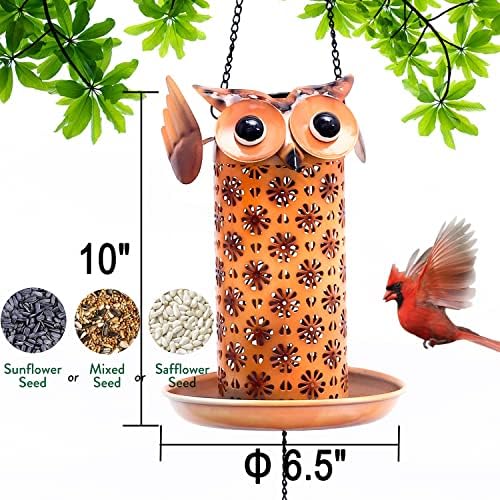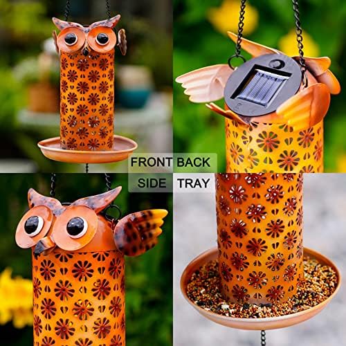 Solar Owl Wild Bird Feeder for Outside Hanging,Owl Decorative Solar Bird Feeder