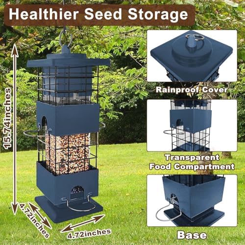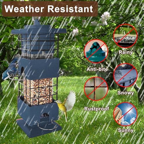 Heavy-Duty Metal Bird Feeder: Crafted with premium quality, chew-proof metal, our bird feeder for outdoor guarantees long-lasting durability. The sturdy metal design ensures that even the most determined squirrels won’t be able to damage or break into the anti squirrel bird feeders for outside. The sleek top cover securely locks, preventing any clever squirrels from finding a way in.