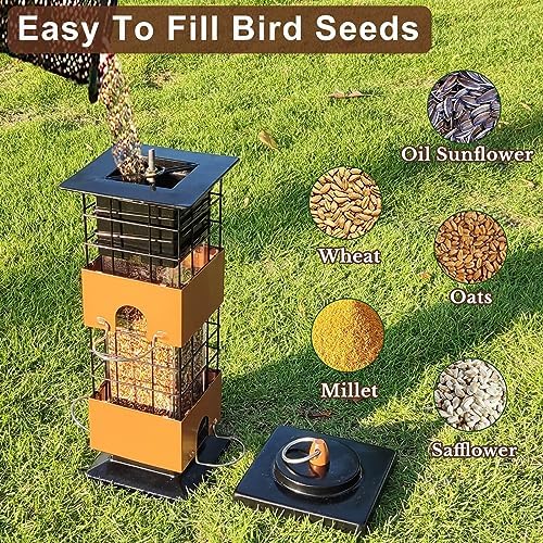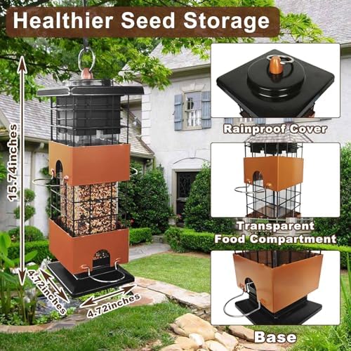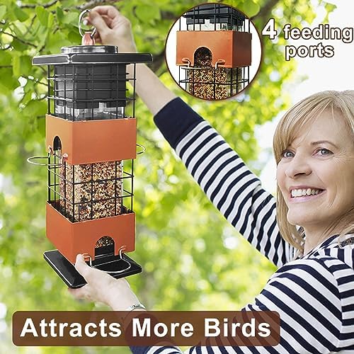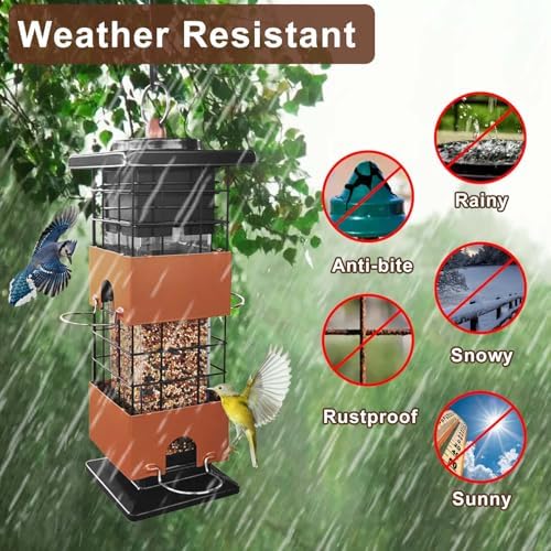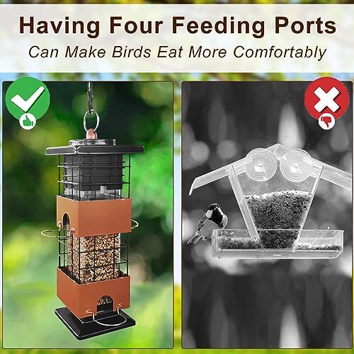 Squirrel Proof Bird Feeder, Metal Bird Feeders for Outdoors Hanging,Squirrel Proof Wild Birds Seed Feeders for Finch Cardinal (Brown, 3Lb)