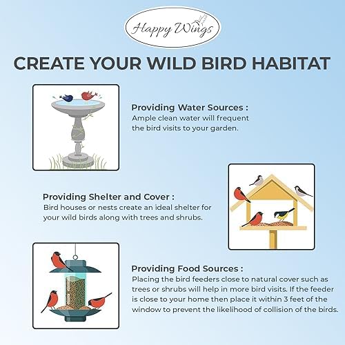 Bird houses or nests create an ideal shelter for your wild birds along with trees and shrubs.