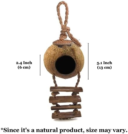 The coconut husk by SunGrow is the perfect birdhouse for your garden. You can either hang this indoors if you own a small cage or install it in a large cage as a decorative item. It includes a hanging loop and a rough wooden rope ladder for added stimulation and beauty.