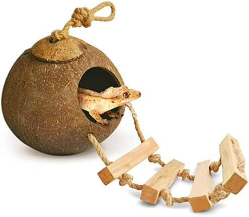 Assists In Your Pet’s Exercise — The rough wooden rope ladder and coconut fibers, provide a variety of textures which encourage the muscular exercise of your pet. It will keep him/her active. Both crested and leopard geckos love crawling up and down the ladder. Watch them waiting on the ladder and grabbing their treats from the hole inside.