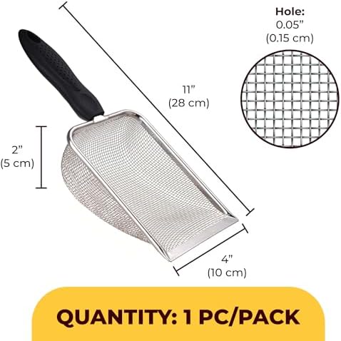 Always scoop at an angle by tilting it slightly while sifting to catch materials more easily without disturbing the rest of the bedding.After using, rinse the scoop under warm water to keep it fresh and ready for the next use.Store in a dry spot when not in use to avoid rust or wear over time.