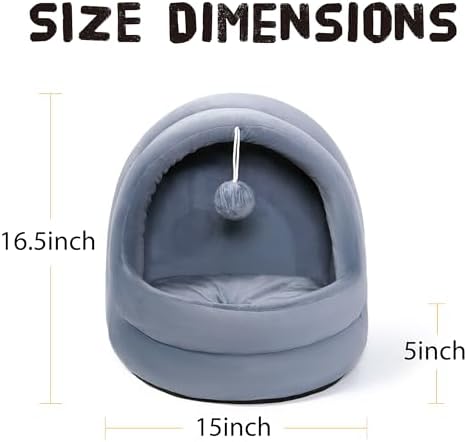Outstanding Quality: Keep your home clean-smelling! With our cat beds, smell and dandruff now a problem of the past! We also made an 80 GSM plastic slip-proof and waterproof design at the bottom to protect your floor from damage. Five times better than most cat beds. Don’t be fooled by the compact, lightweight appearance of the cat bed,cats like to squeeze. Our cat bed size: 15 inches, 5 inches, 16.5 inches, can accommodate most of the cat’s body, giving your cat a good sleep experience.