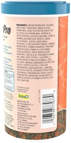 TetraPro Goldfish Crisps provide advanced nutrition for the discerning fish-keeper. This nutritionally balanced diet feeds cleaner than ordinary flakes and leaves less waste in the aquarium. Each goldfish crisp is made using an exclusive low-heat process which preserves essential vitamins for a healthier, more nutritious diet. TetraPro Goldfish Crisps float longer to allow fish more time to eat and are precision crafted with Biotin to support fish immune system health.