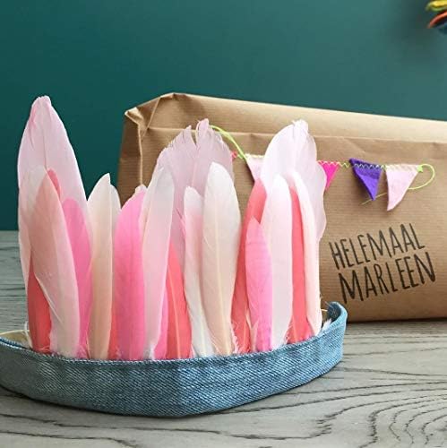 Package contains 100 pieces of large goose feathers in sizes between 6-8 inch.
