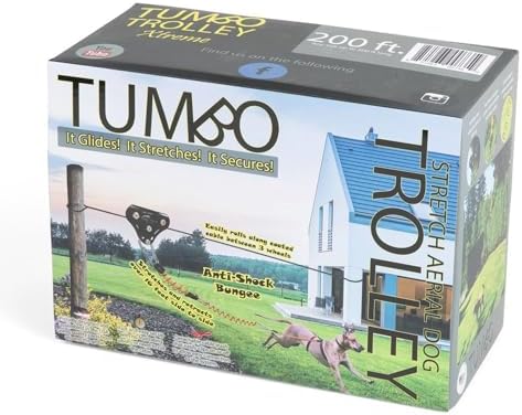 TUMBO TOUGH components and 1 year warranty in the USA – All of our hard parts in our dog trolly runner are either galvanized steel, nickel plated steel or aluminum/stainless steel. This adds up to years of trouble free and corrosion free use. The Tumbo Trolley is something that has been designed to be bought for life, a quality that is lost on today’s cheaply made products. Of course our trolley can’t help with keeping neighbors dogs out of yard, it will keep yours in. Also, check out the travel trolley for dogs camping. Warranty is for US customers only.