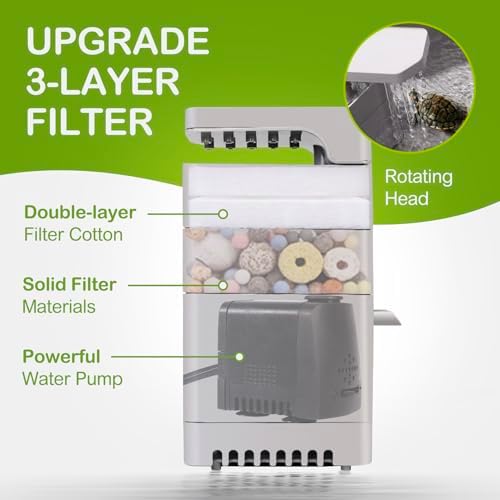 3-Layer Adjustable Water Pump Filter: Ensure a clean and healthy environment for your turtle with our Newly Upgraded 3-layer Water Pump Filtration. It can adjust the height and rotation direction of the pump according to the living habits of the turtle. Double-layer filter cotton and solid filter materials can effectively adsorb impurities and keep the water fresh and clean
