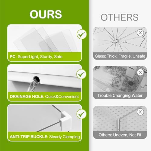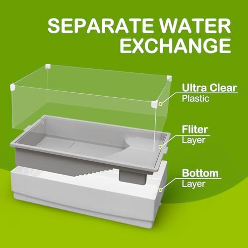 Separate Water Exchange: This turtle tank adopts a separated design, easy to clean and change the water, saving time and energy. Just by lifting the filter layer, the food residue and excreta will sink into the water in the bottom layer. The bottom drainage outlet is equipped to help your tank drain quickly. After draining the water, add clean water and water changing accomplished