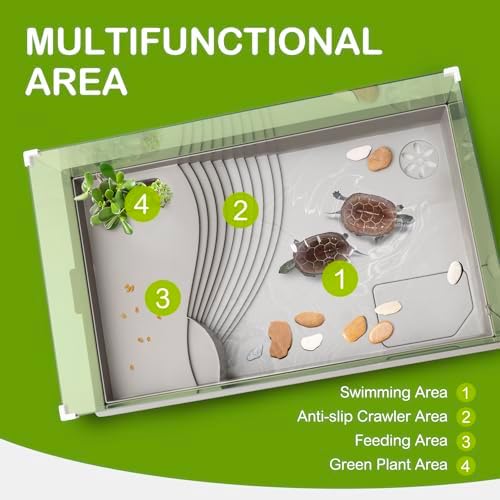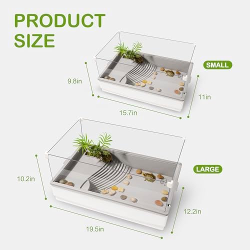 Wide Application: We offer two sizes to accommodate different amphibious creatures. Small size: 15.7*11*9.8 inch, Large size: 19.5*12.2*10.2 inch, Ideal for a wide range of small aquatic creatures, including water turtles, hermit crabs, small turtles, tiny tortoises, crayfish, fish, and small amphibians. Pets under 3 inches are recommended