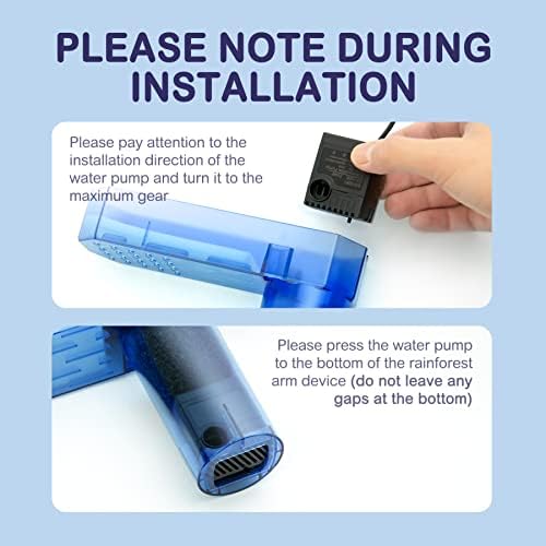 Please press the water pump to the bottom of the rainforest arm device (do not leave any gaps at the bottom).
