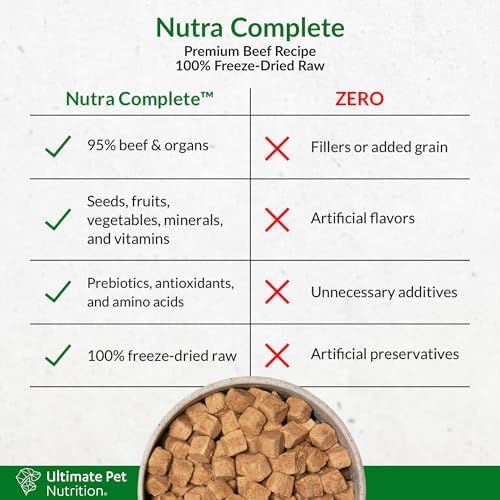 HIGH QUALITY BEEF – Premium, ranch-raised beef and organs make up 95% of Nutra Complete. Our beef is 100% freeze-dried, so your dog gets easily digestible protein from every bite.*