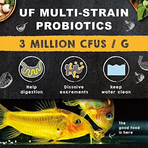 Healthy Growth Formula : Rich in protein and vitamin D. It’s not only tasty but also keeps fishes healthy! Jam-packed with a variety of vitamins (A, C, D3, E, B1, B2, B6, B12) great for bottom feeding fish’s growth and keeping color vibrant. Added probiotics to increase the feed conversion rate, improve immune system and gut health