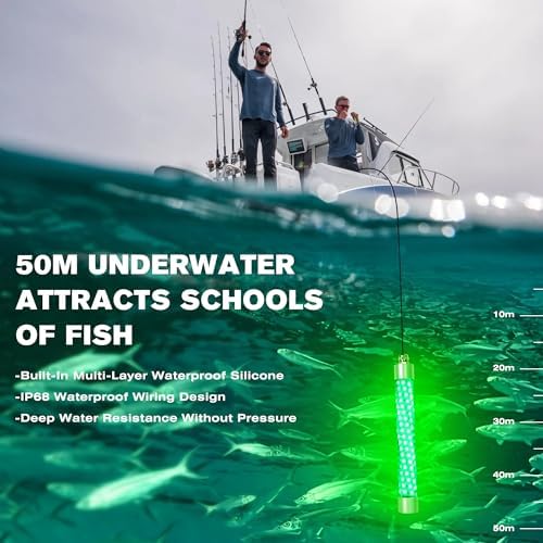 Wide Applications: The green fishing light is suitable for most freshwater and saltwater fish, such as catfish, squid, crappie, snook,crucian carp, carp, herring, grass carp, silver carp, tilapia, bigeye, red snapper, crucian carp, cuttlefish, hairtail, plaice, Pacific bass, Kinki, largemouth bass, pike, salmon, trout, muskellunge, shad