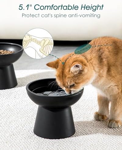 【Promotes Comfortable Feeding Posture】The elevated cat bowl design(5.1″ height) reduces neck strain, promoting a more natural and comfortable feeding posture. It supports better digestion and reduces strain on sensitive stomachs, making mealtime more enjoyable for your pet