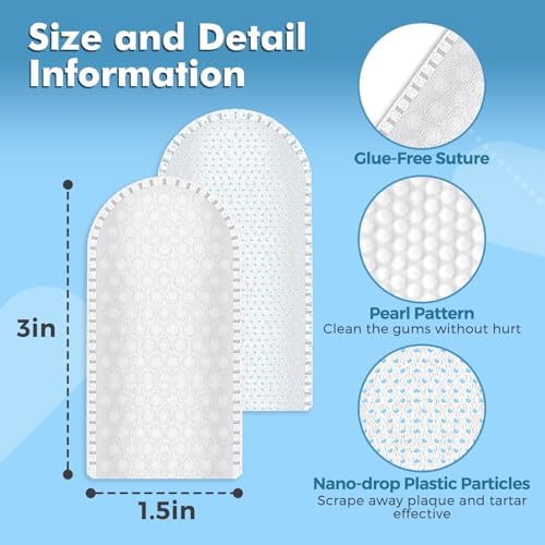 【Double-sided Availability】Our dog finger tooth wipes are made of different materials on both sides. One side is made of nano-drop plastic particles can scrape away plaque and tartar effective. The other side, pearl pattern can clean the gums without hurt.