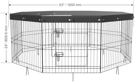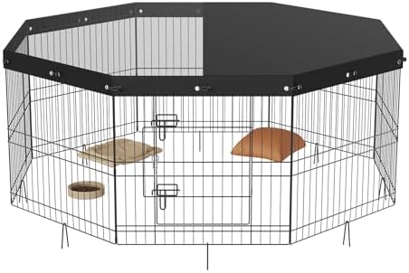 3.🐾🐾🌸🌸【HIGHER QUALITY FOLDABLE METAL DOG EXERCISE PLAYPEN】: — Unlike others, our pet fences are constructed from high-quality iron wire with electrophoretic surface treatment, ensuring resistance to rust and longevity. Both assembly and disassembly are a breeze, allowing you to effortlessly transport the puppy playpen for indoor and outdoor use. The included pet playpen cover boasts 16 elastic buckles for secure attachment and easy removal for portability.
