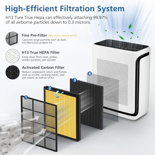 Upgraded HEPA Smart Technology: Our H13 True HEPA Filter uses upgraded HEPA Smart Technology, which can achieve a better purification effect than traditional general HEPA. Vital 200S H13 Ture Hepa can effectively attach 99.97% of all airborne particles down to 0.3 microns in the air like dust, hairs, pet fur, and lint, and prolongs the life of the HEPA filter for the LEVOIT Vital 200S air purifier, helping it stay free from dust, pollen, smoke particles, and pet dander