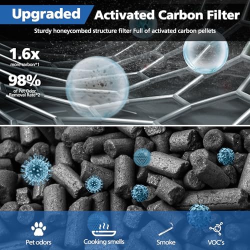 Idea for Households with Pets: The custom high-efficiency Vital 200S air purifier filter activated carbon filter layer improves deodorant ability by 60%, helps reduce unpleasant odors and fumes such as smoke, cooking odors, and pet odors, as well as VOCs, which makes it a good choice for homes with pets, cooking, and smokers. Reduce all odors and gases from your home to improve the air quality and your health without worrying about second-hand pollution