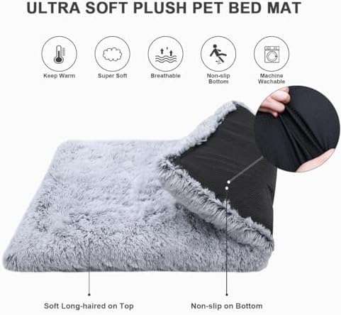Anti-Sip design, anti-Slip bottom design of the dog bed pad work great on floors, prevents moving and shifting. Dog crate mat can keep position and make your dog safe when snap on the mat or Dog mats for sleeping.