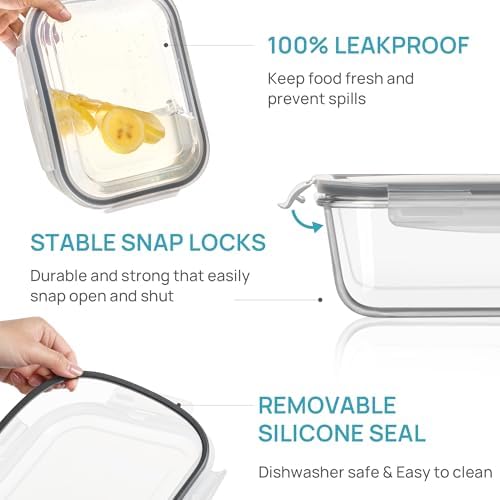 【Premium Glass & BPA Free】The glass containers are made of high quality borosilicate glass, making it safe for food storage. It is suitable for storing fruits, vegetables, salads, cereals, meals, meat, pasta, soups. It is a good choice for preparing meals at home, easy to get a healthy life.