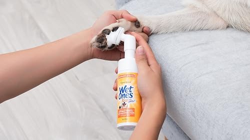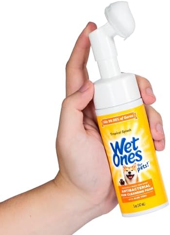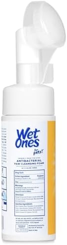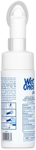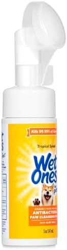 Wet Ones for Pets Antibacterial Dog Paw Cleaner with Built-In Paw Scrubber Brush offers pet parents an easy and effective way to keep their dogs’ paws clean anytime, anywhere. This all-in-one dog paw cleaner uses a foaming cleanser with antibacterial properties, designed specifically for dog paw care. Simply squeeze the bottle to release the antibacterial cleaner into the built-in scrubber, making it a breeze to scrub away dirt, mud, and debris. Your dog’s paws will be left clean and refreshed with a pleasant Tropical Splash scent. This paw cleaner for dogs helps remove dirt from between the toes with its foaming action, making it an essential part of any dog paw care kit. Wet Ones for Pets kills 99.99% of germs, ensuring hygienic dog paw care. The built-in paw washer is perfect for on-the-go dog cleaning supplies. Wet Ones for Pets knows what pet owners need most when it comes to dog cleaning supplies. The easy-to-use design makes this dog paw washer perfect for cleaning up after rainy walks or muddy backyard play. Keep a bottle in your car, at home, or even with your puppy paw scrubber for quick access.