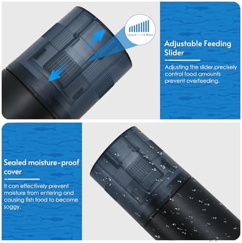 【Double Feeding Window】: The feeder includes two feeding windows of different sizes, which can add different types of fish food portions. Whether you need smaller portions or larger portions, this allows you to precisely adjust the amount of food to ensure optimal feeding for all types of fish.