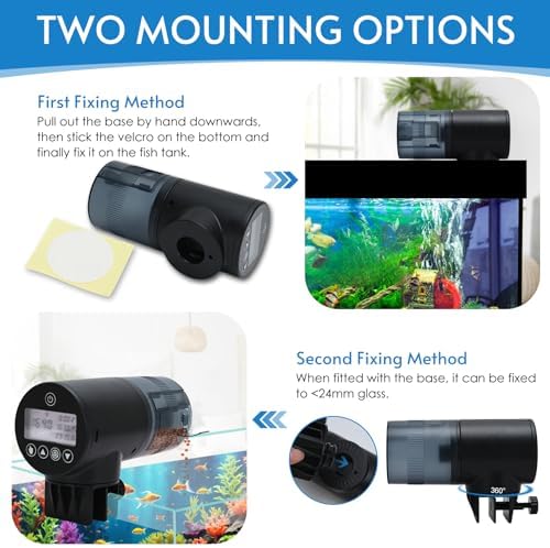 【Two Different Fixing Methods】The WIFI automatic fish feeder comes with a bracket that can be fixed on the edge of the fish tank for a coverless aquarium, or it can be fixed on the fish tank cover with a double-sided sticker for an aquarium with a cover.
