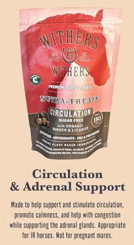 CIRCULATION & ADRENAL SUPPORT – Appropriate for IR horses, organic ginger root and organic licorice root offer many health benefits and can ease stress during transport and showing. Not for pregnant mares.