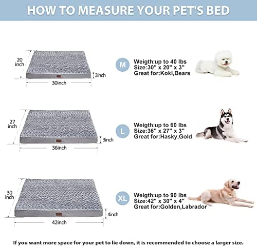 Comfortable plush surface: Orthopedic pet bed waterproof mattress is made of warm and comfortable short plush and texture pattern fabric with fashionable elements to provide pets with a sense of calm and anti-anxiety.
