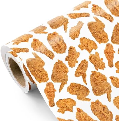 Unique Design: Realistic crispy fried chicken pieces patterns are printed on white wrapping paper. This food wrapping paper makes it ideal for creating a funny gift presentation that leaves a lasting impression.
