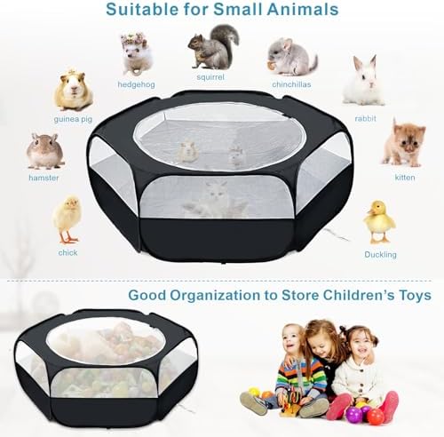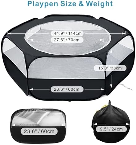 Notice Before Purchase_: Please confirm if the product size meets your needs. And this playpen is NOT suitable for small animals that love to bite. Please avoid staying playpen for too long, otherwise them will bite through the playpen fabric and run away
