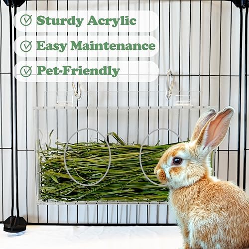 Secure Covered Design: The covered design prevents hay from getting wet or contaminated, keeping it fresh and clean for your rabbits while also minimizing mess in their living space.