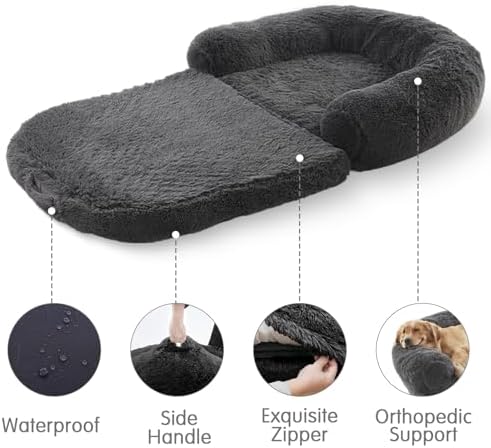 COMFORTABLE & CONVENIENT: Human dog bed uses premium faux fur plush as the bed cover fabric, which is soft, warm, breathable, and durable. In addition, we have added a storage pocket on the side so that you can put some small items when you lie down inside