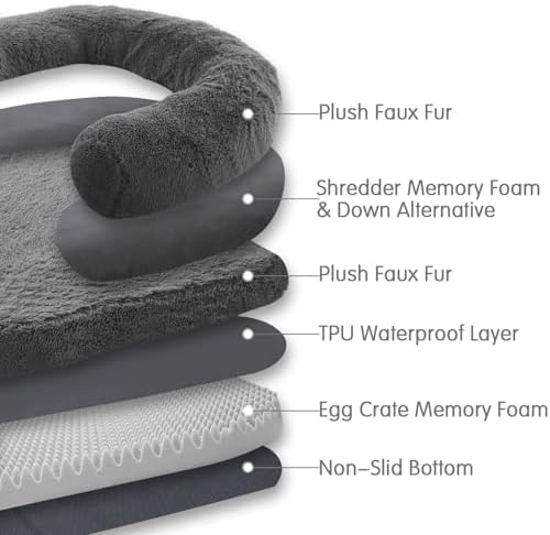 [Moms Embracing-like sense of security]: 71x45x10 IN Dog beds for Large dogs provide oversized surround, The thick bolster allows you to tuck your hands and feet into it, just like lying in the arms of mom, warm, peace of mind. Effectively relieve your anxiety.